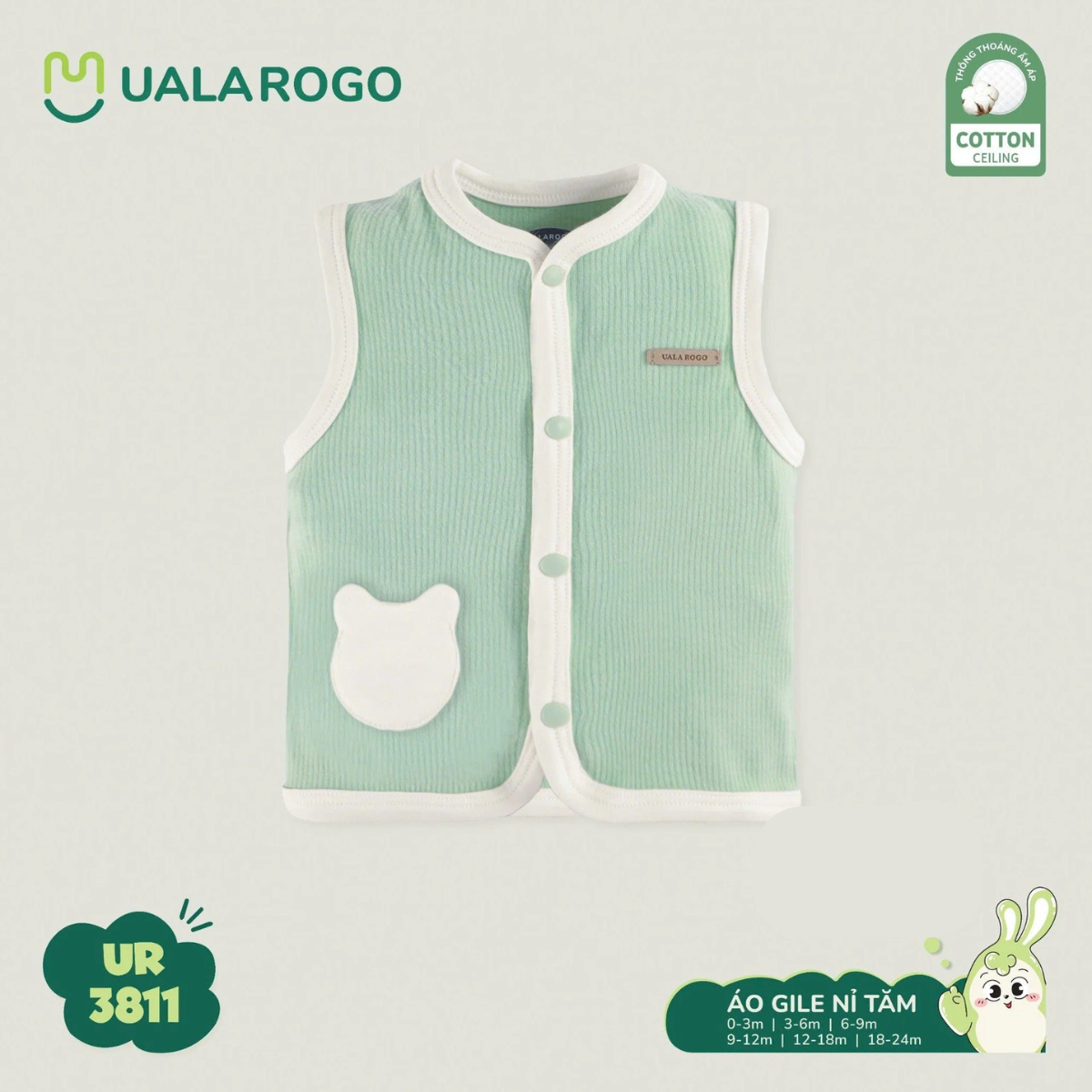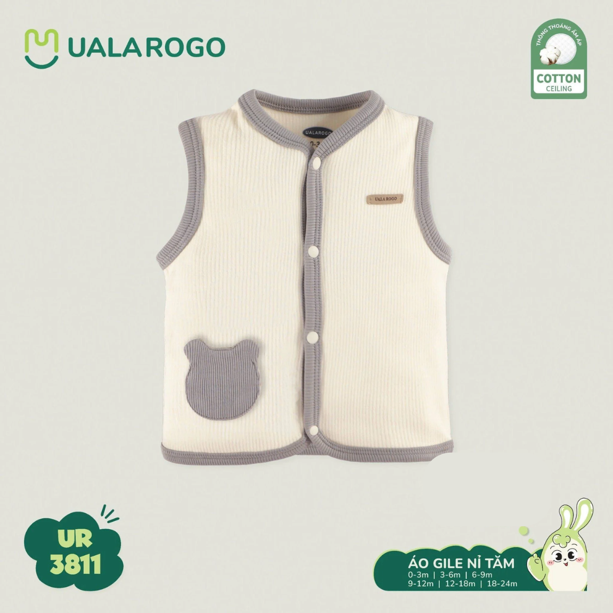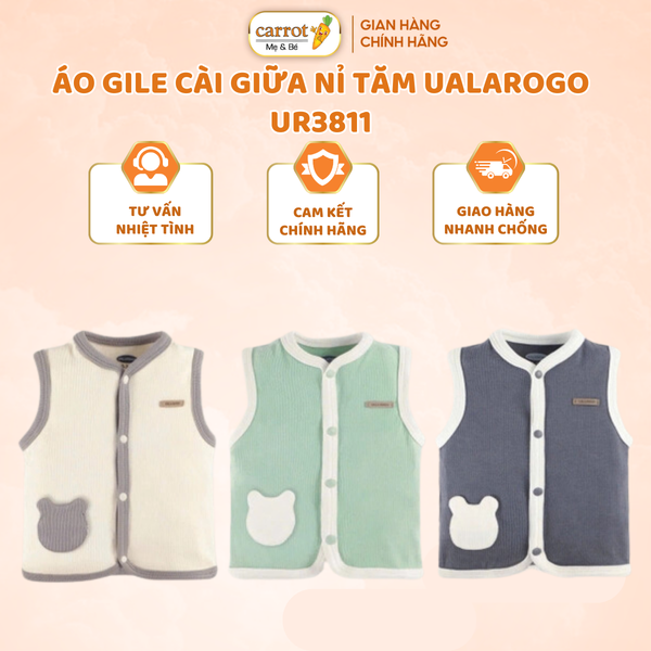 Áo Gile Nỉ Tăm Cài Giữa Ualarogo UR3811 Cho Bé 0-12M