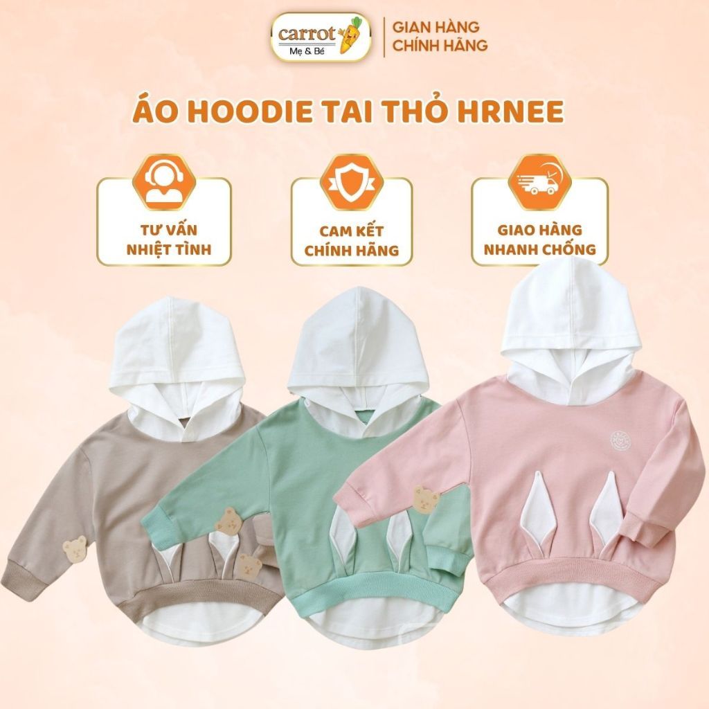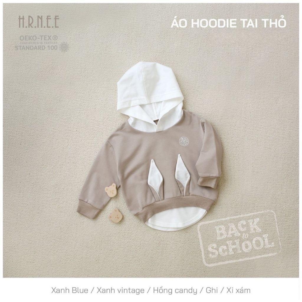 - Với họa tiết tai thỏ độc đáo, gần gũi với trẻ nhỏ và bảng phối màu với các tone màu thời thượng mới mẻ, siêu phẩm áo hoodie tai thỏ nhà HRNEE chắc chắn không thể làm mẹ thất vọng