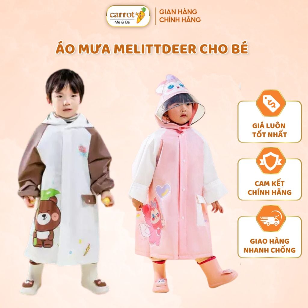 Áo Mưa Melittdeer Cho Bé, Áo Mưa Trẻ Em Cao Cấp Có Mũ, Chất Liệu An Toàn Cho Bé