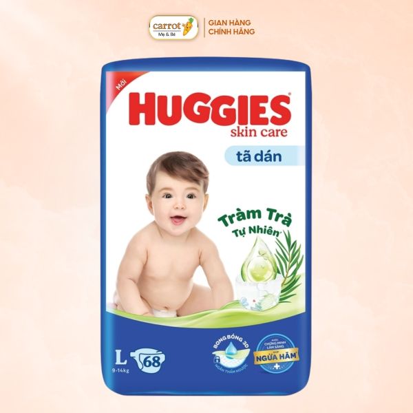 Bỉm - Tả Dán Huggies Skin Care Tràm Trà Size L 68 Miếng (6-11kg)