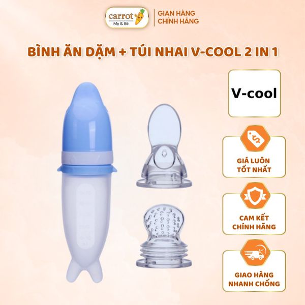 Bình Ăn Dặm Và Túi Nhai V-Cool 2In1 Cho Bé
