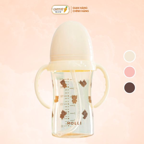 Bình Nước Tập Uống MOLLI Dung Tích 210ML, Bình Nước Có Hai Tay Cầm, Màu Ngẫu Nhiên