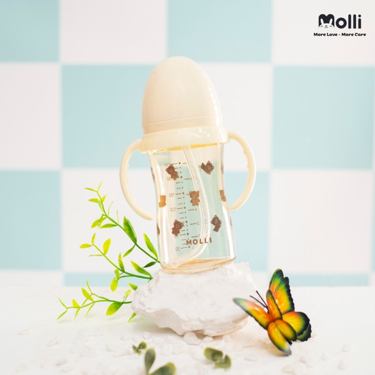 - Họa tiết dễ thương: Thân bình nước Molli được in hình họa tiết ngộ nghĩnh, đáng yêu, giúp kích thích bé uống nước.