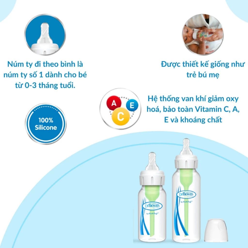 Bình Sữa Dr Brown's Options Nhựa PP BPA Free Sản Xuất Tại Mỹ 120ML, 250ML Cho Bé