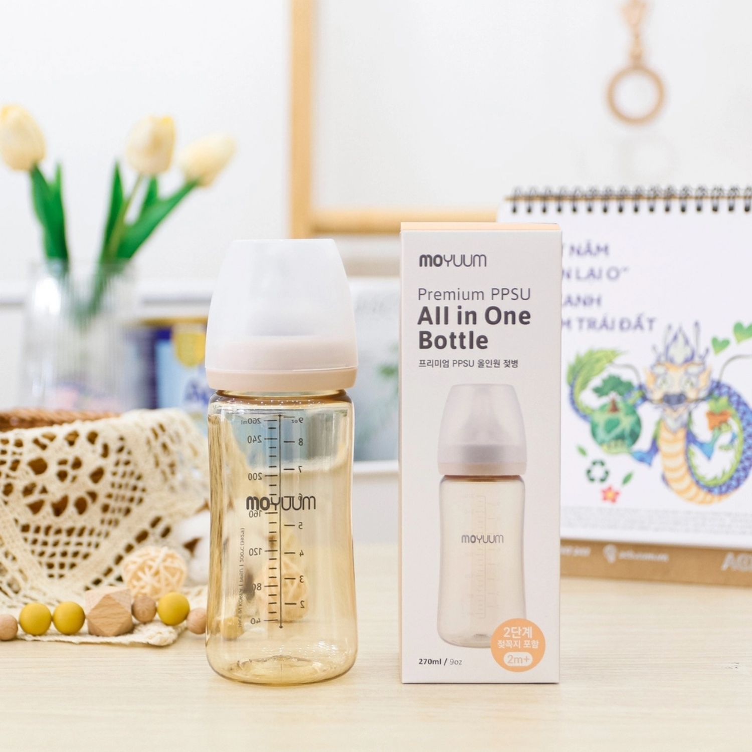 | Tên sản phẩm | Bình sữa Moyuum PPSU 270ml trơn kèm núm số 2 |