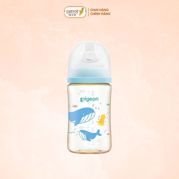 Bình Sữa Pigeon PPSU Softouch Baby-Friendly World Cổ Rông 240ml Hình Đại Dương