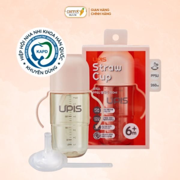 Bình Tập Uống Nước UPIS Hàn Quốc Cho Bé Từ 6M+ 260ml Màu Hồng