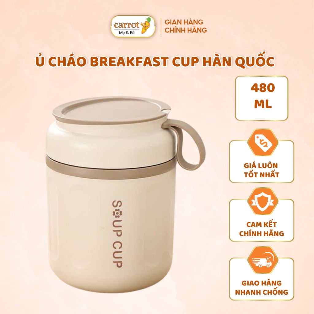 Bình Ủ Cháo Breakfast Cup Có Dung Tích 480ML Màu Hồng Và Màu Be