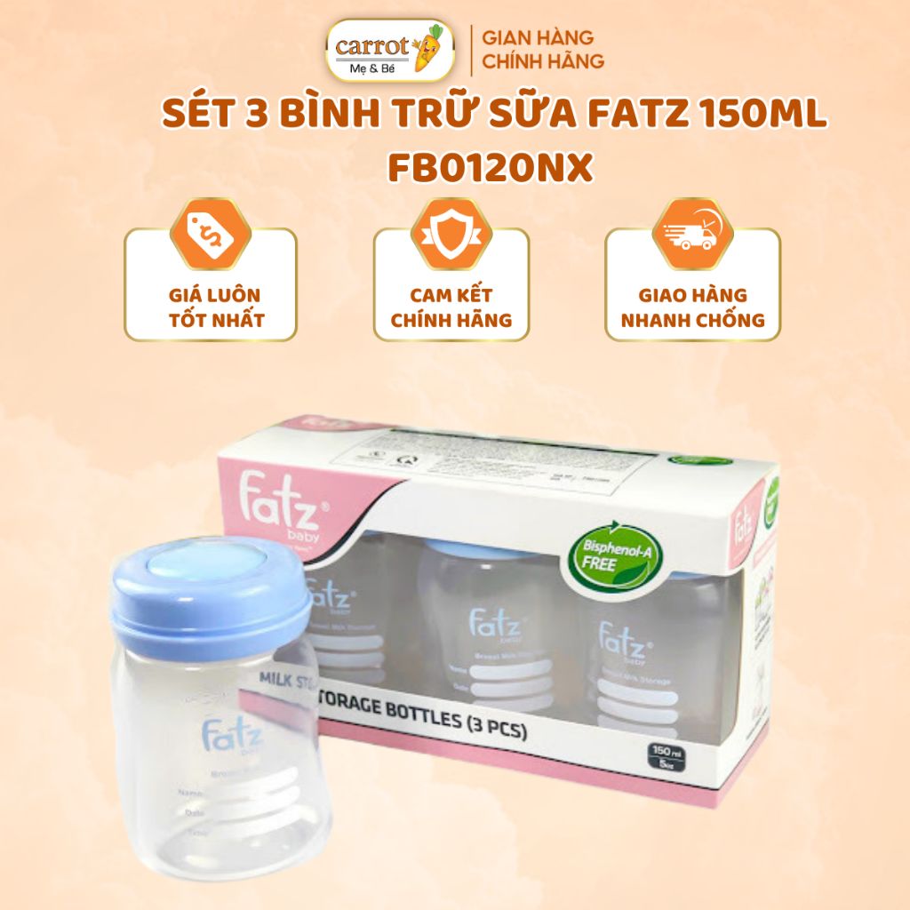 Bộ 3 Bình Trữ Sữa Fatz Baby Cổ Rộng 150ML Hàn Quốc