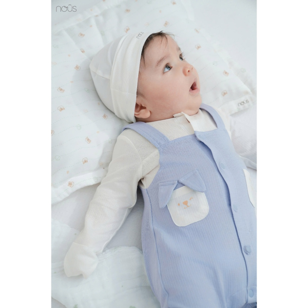 Bộ Liền Dài Giả Yếm Màu Xanh Da Trời Phối Trắng Nous Cho Bé Sơ Sinh