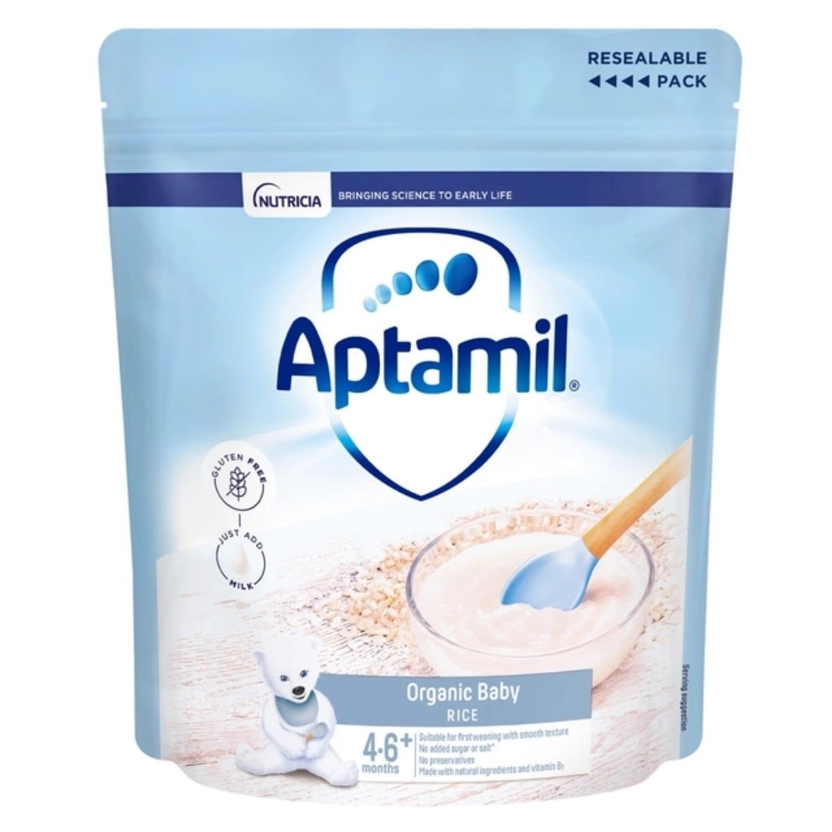 Bột Aptamil – Bột ăn dặm Aptamil giàu dinh dưỡng, nay đã có thêm dòng Organic. Các loại ngũ cốc thơm ngon của Aptamil là sản phẩm hoàn hảo để mẹ giới thiệu cho các bé hương vị và kết cấu đồ ăn mới trong những ngày đầu ăn dặm. Mỗi gói bột có công thức riêng có hàm lượng dinh dưỡng được điều chỉnh đa dạng nhưng vẫn duy trì sự cân bằng, giàu sắt đảm bảo cho sự phát triển trí não cũng như các loại vitamin khác như A, C và D,…