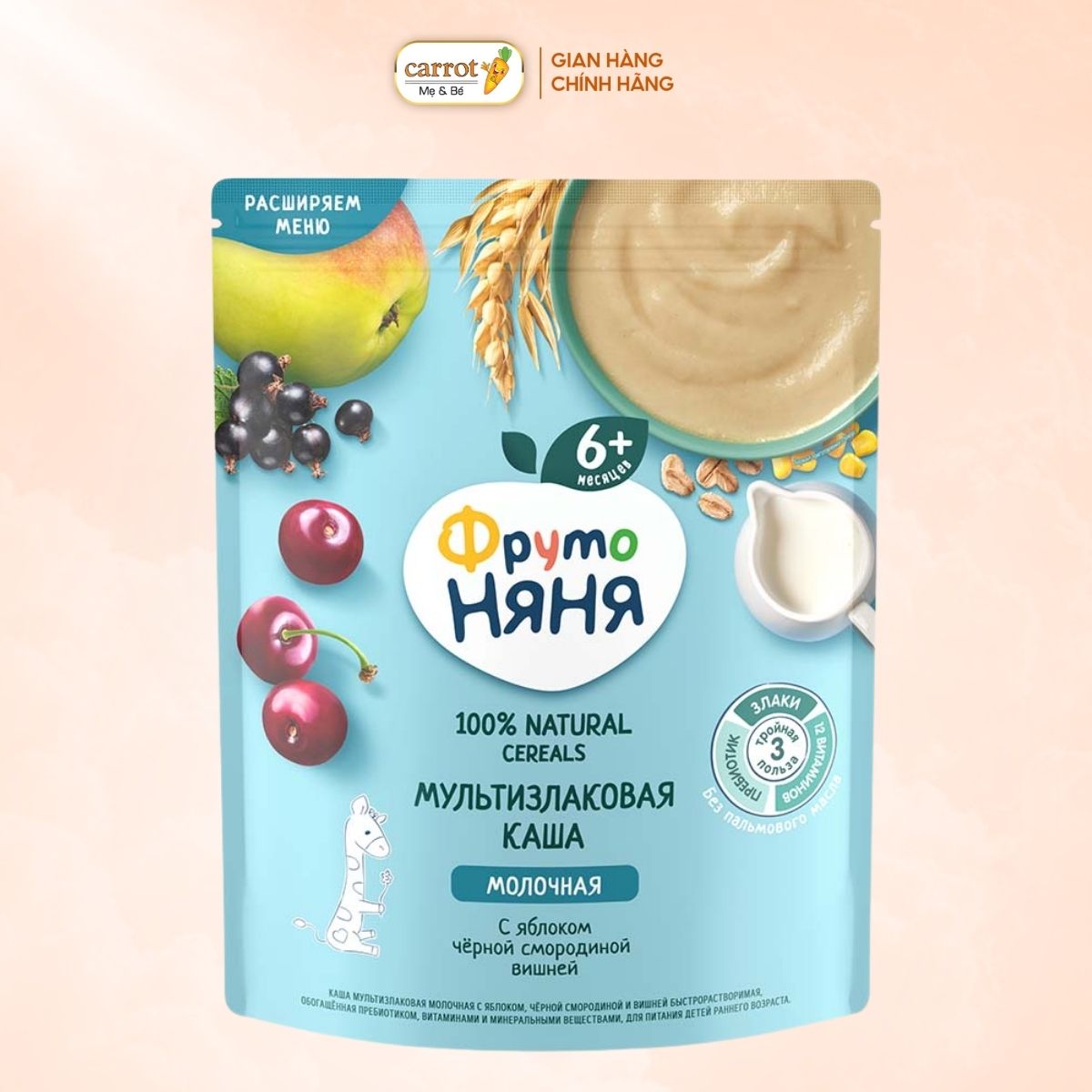 Bột Ăn Dặm Fruto Nga Vị Việt Quất Chery Táo 200g Cho Bé Từ 6 Tháng