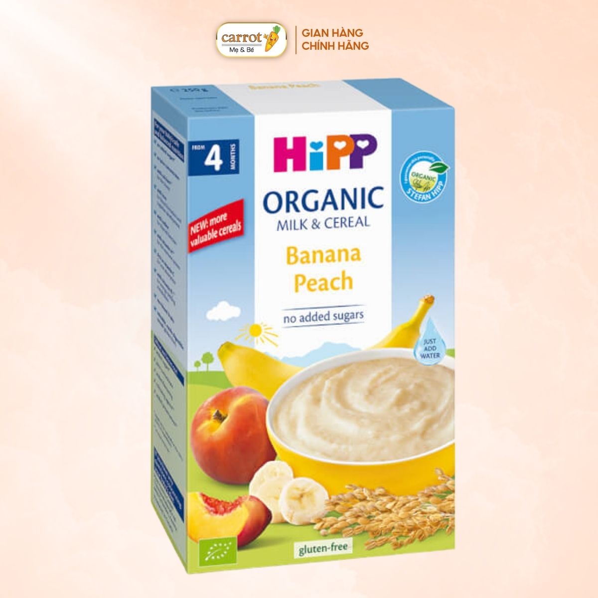 Bột Ăn Dặm Hữu Cơ HiPP Vị Đào & Chuối 250g Cho Bé Từ 4 Tháng