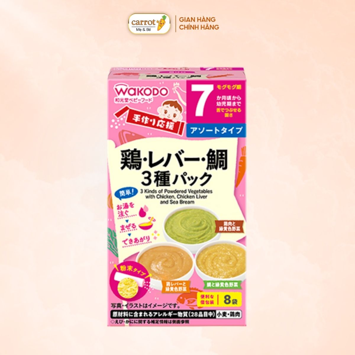 Bột Ăn Dặm Wakodo Vị Cá Gà Cải Cho Bé Từ 7 Tháng Hộp 8 Gói 3.5g