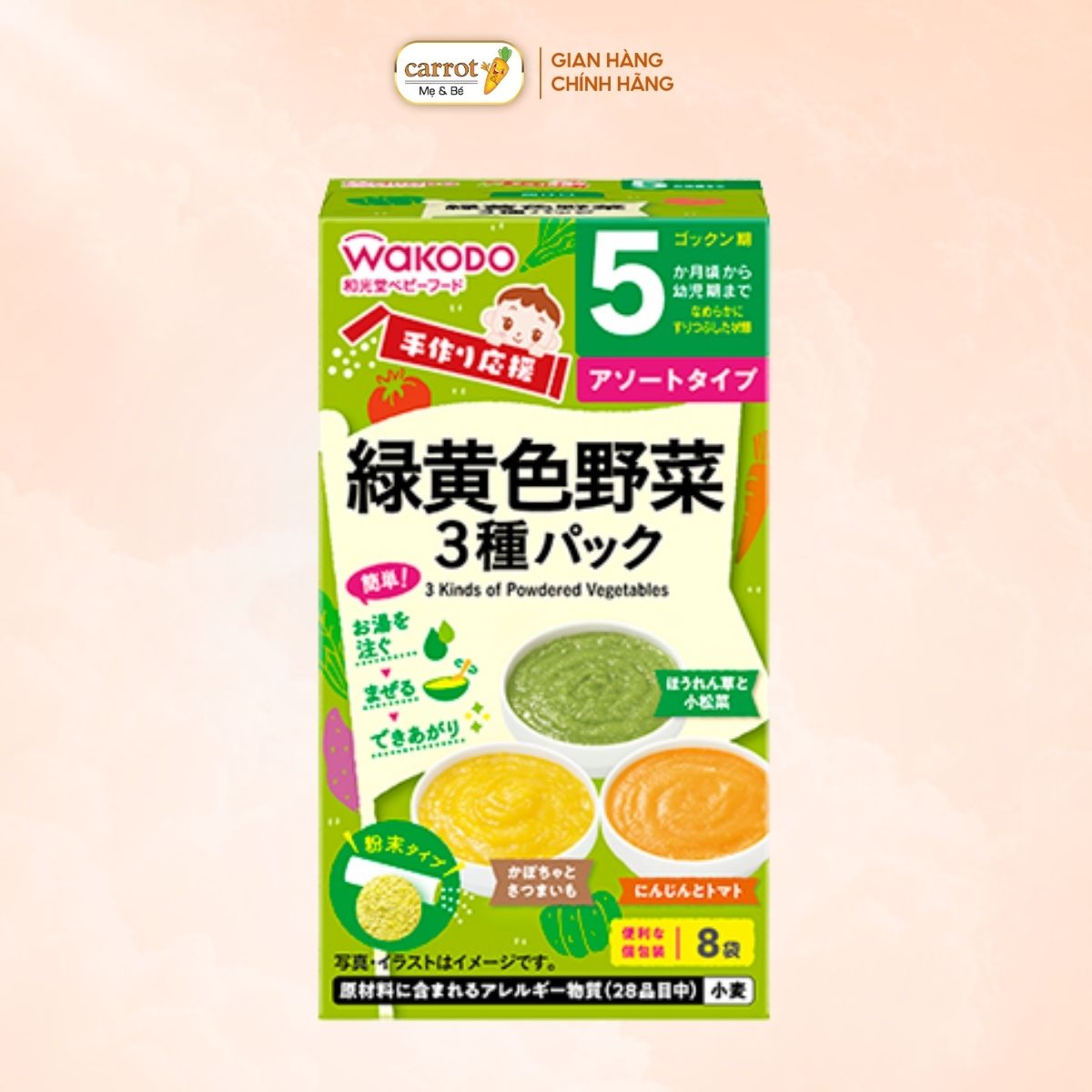 Bột Ăn Dặm Wakodo Vị Rau Củ Cho Bé Từ 5 Tháng Hộp 8 Gói 3.5g