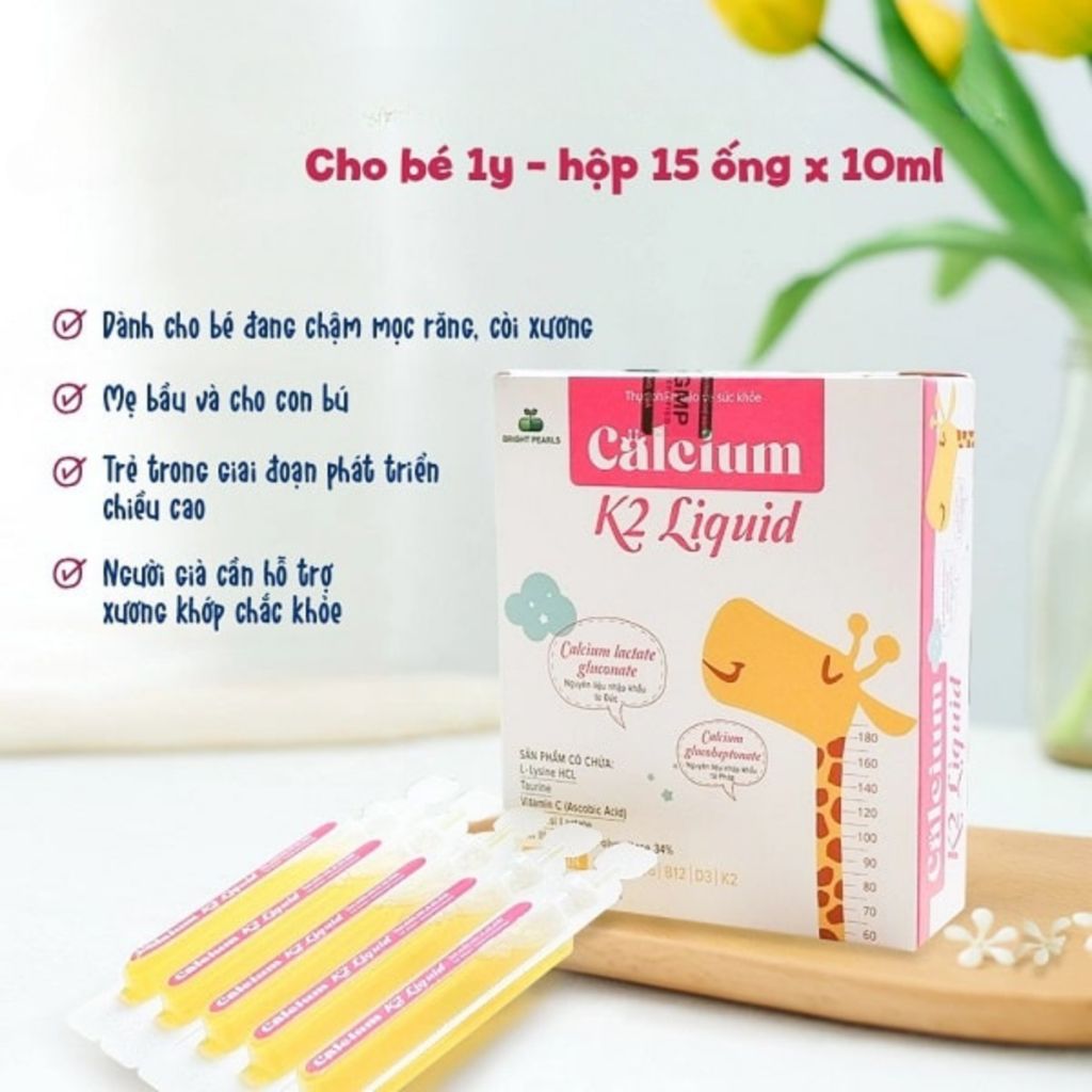 Calcium K2 Liquid - Bright Pearls thích hợp cho trẻ em chậm mọc răng, còi xương do thiếu canxi, phụ nữ mang thai, cho con bú, và người lớn có nhu cầu bổ sung canxi.
