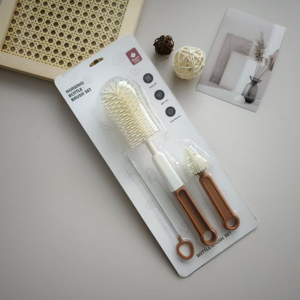 Bộ Cọ Rửa Bình Sữa Smart Tree 3 Chi Tiết – Chất Liệu Silicon Cán Dẹt An Toàn