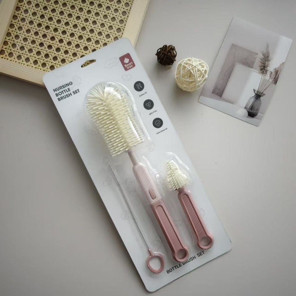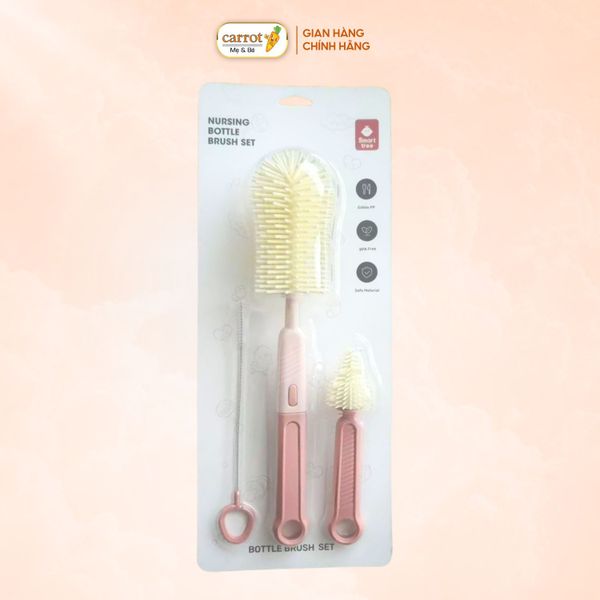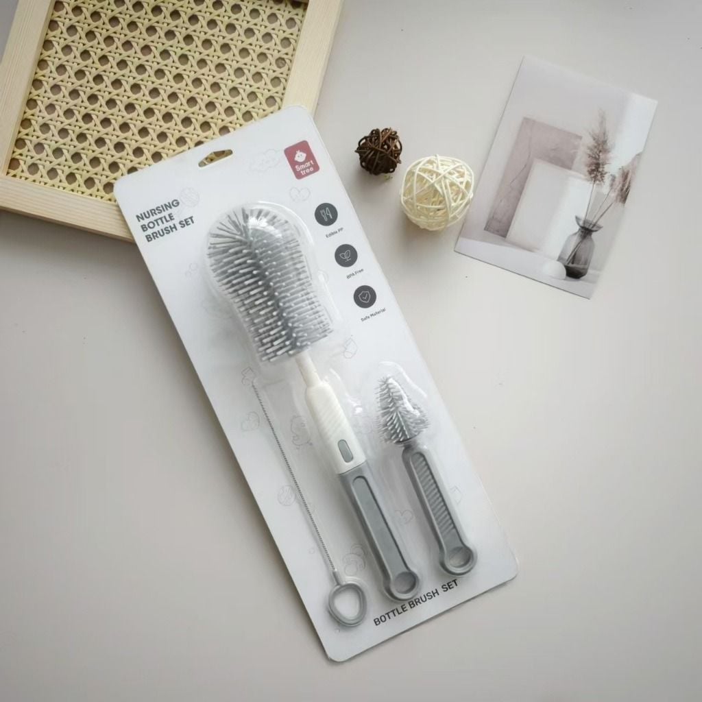 Bộ cọ rửa bình sữa Smart Tree 3 chi tiết – Silicon an toàn, dễ vệ sinh.