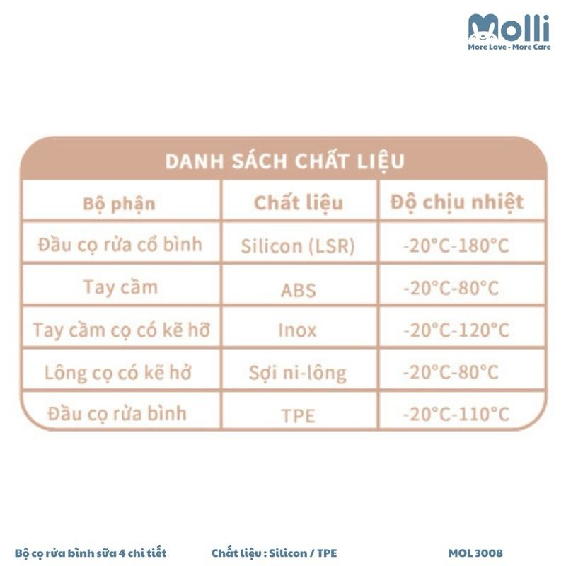 Thông Tin Chi Tiết - Cọ Bình Sữa Silicone Molli Bộ 4 Chi Tiết