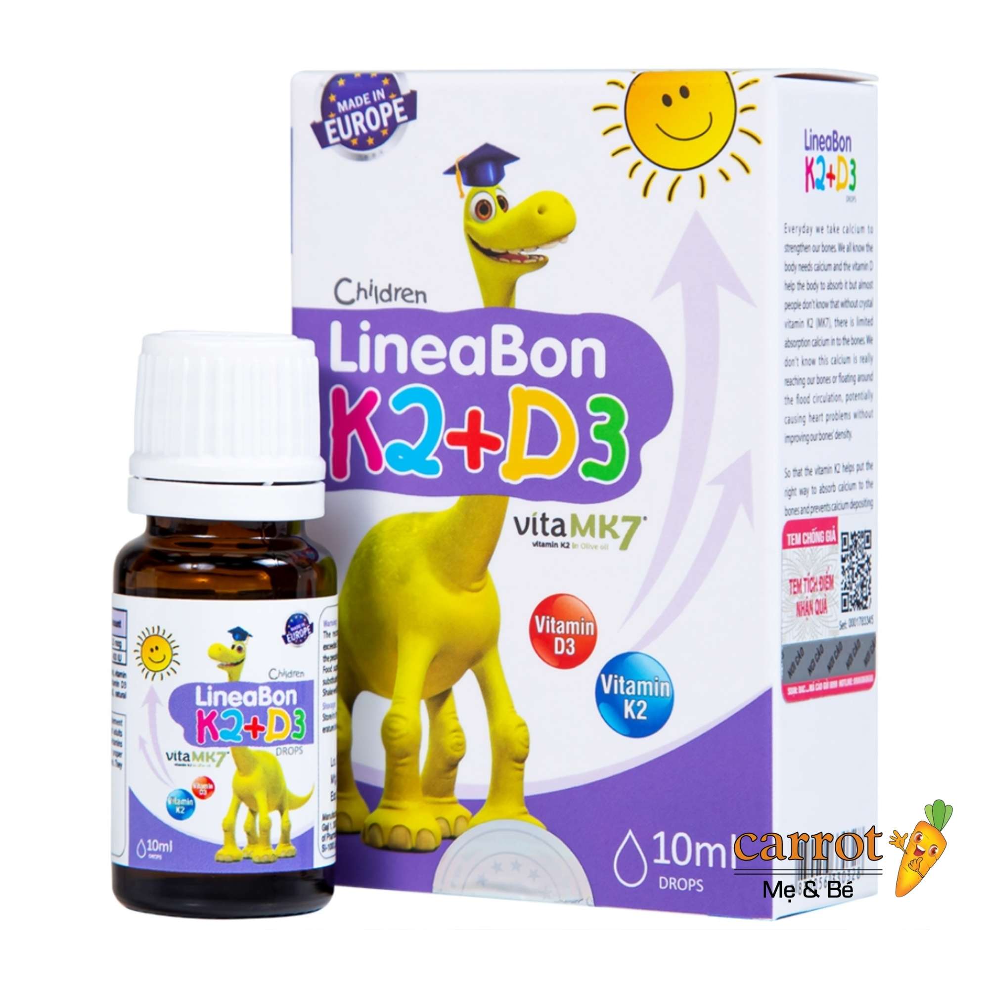 Cha mẹ nào cũng mong muốn con yêu phát triển toàn diện, đặc biệt là chiều cao và hệ xương chắc khỏe. Hiểu được điều đó, Vitamin D3K2 LineaBon ra đời như một giải pháp tối ưu, cung cấp bộ đôi vitamin D3 và K2 tinh khiết, giúp bé hấp thu canxi hiệu quả và phát triển chiều cao vượt trội. Dung dịch LineaBon K2 + D3 không chỉ là một sản phẩm bổ sung vitamin thông thường, mà còn là người bạn đồng hành tin cậy trên hành trình khôn lớn của bé.