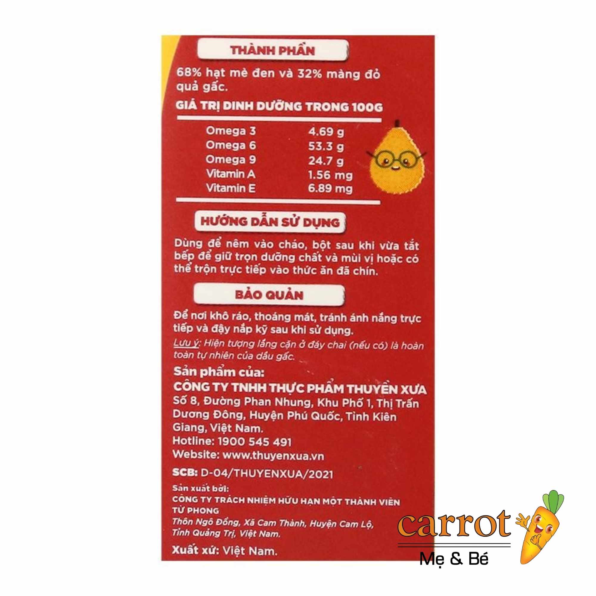 Dầu Gấc Thuyền Xưa - Tinh Hoa Dinh Dưỡng Cho Bé Yêu