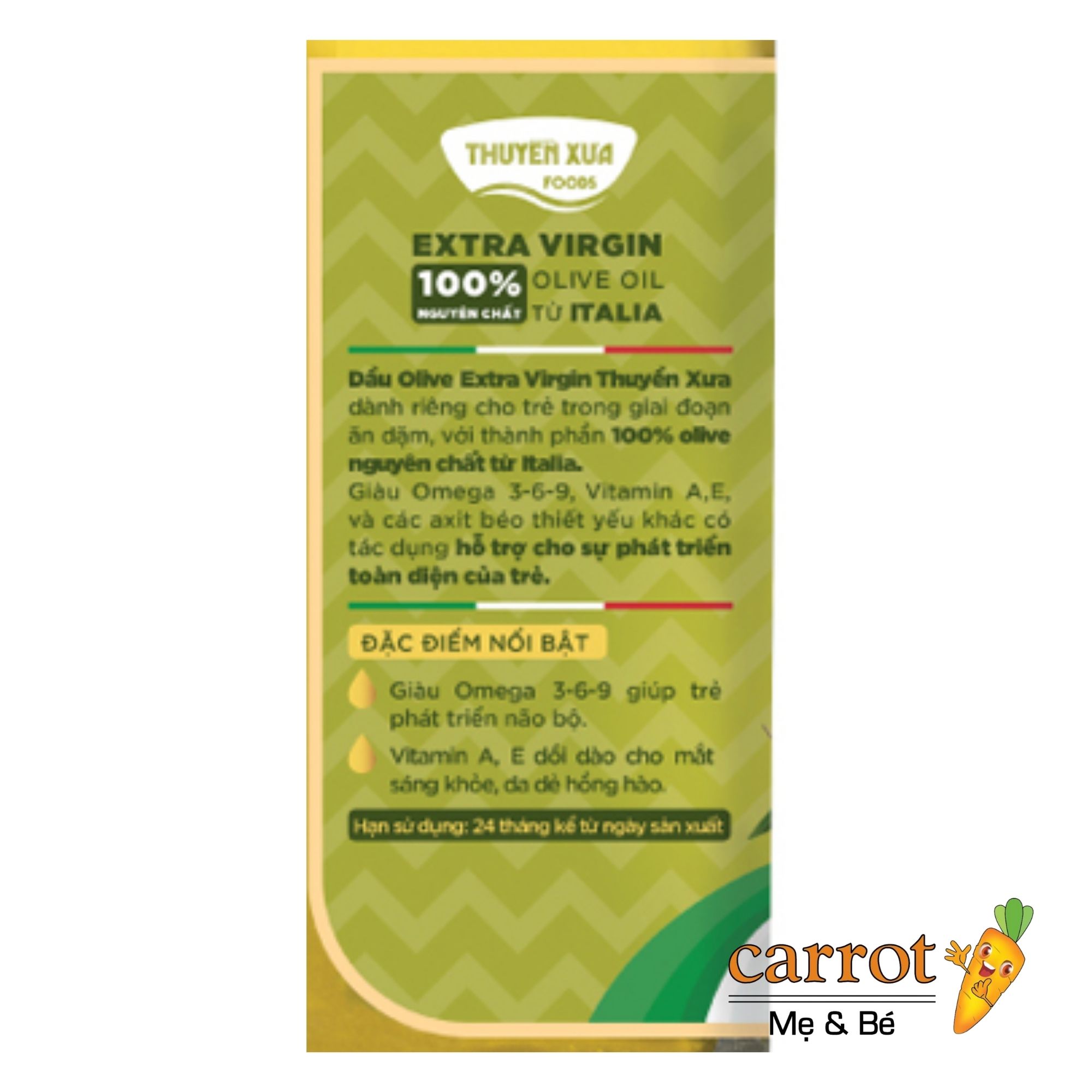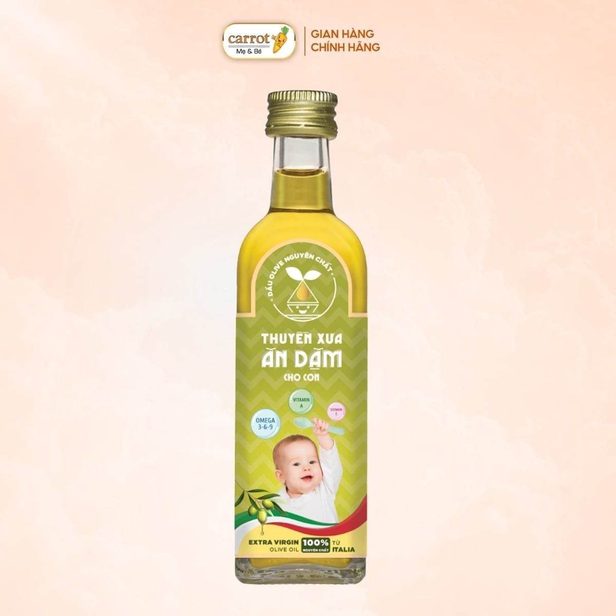 100% dầu olive nguyên chất, nhập khẩu từ Ý.