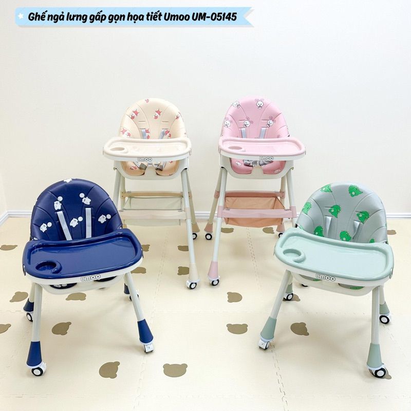 - Ghế ngã lưng gấp gọn Umoo UM-05145 giúp việc cho bé ăn dặm trở nên dễ dàng hơn, ở mọi tư thế ăn nghiêng ngả của bé.
