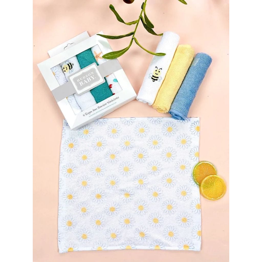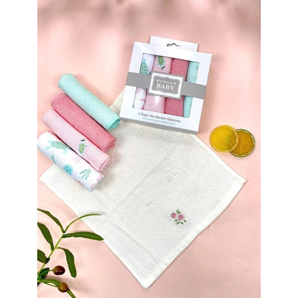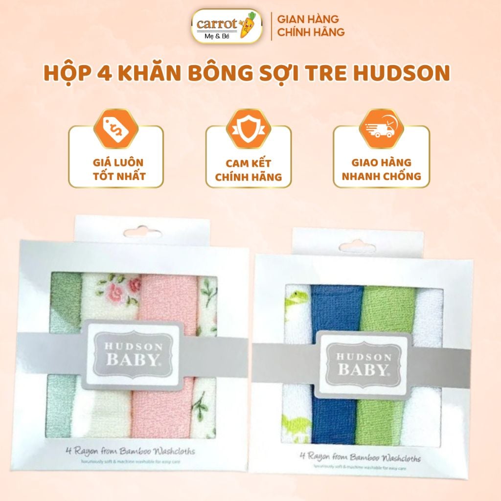 Hộp 4 Khăn Bông Sợi Tre HUDSON, Khăn Sữa Cho Bé