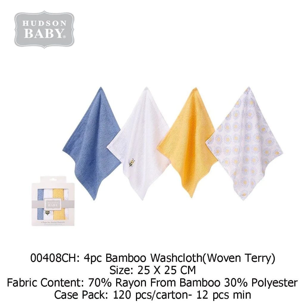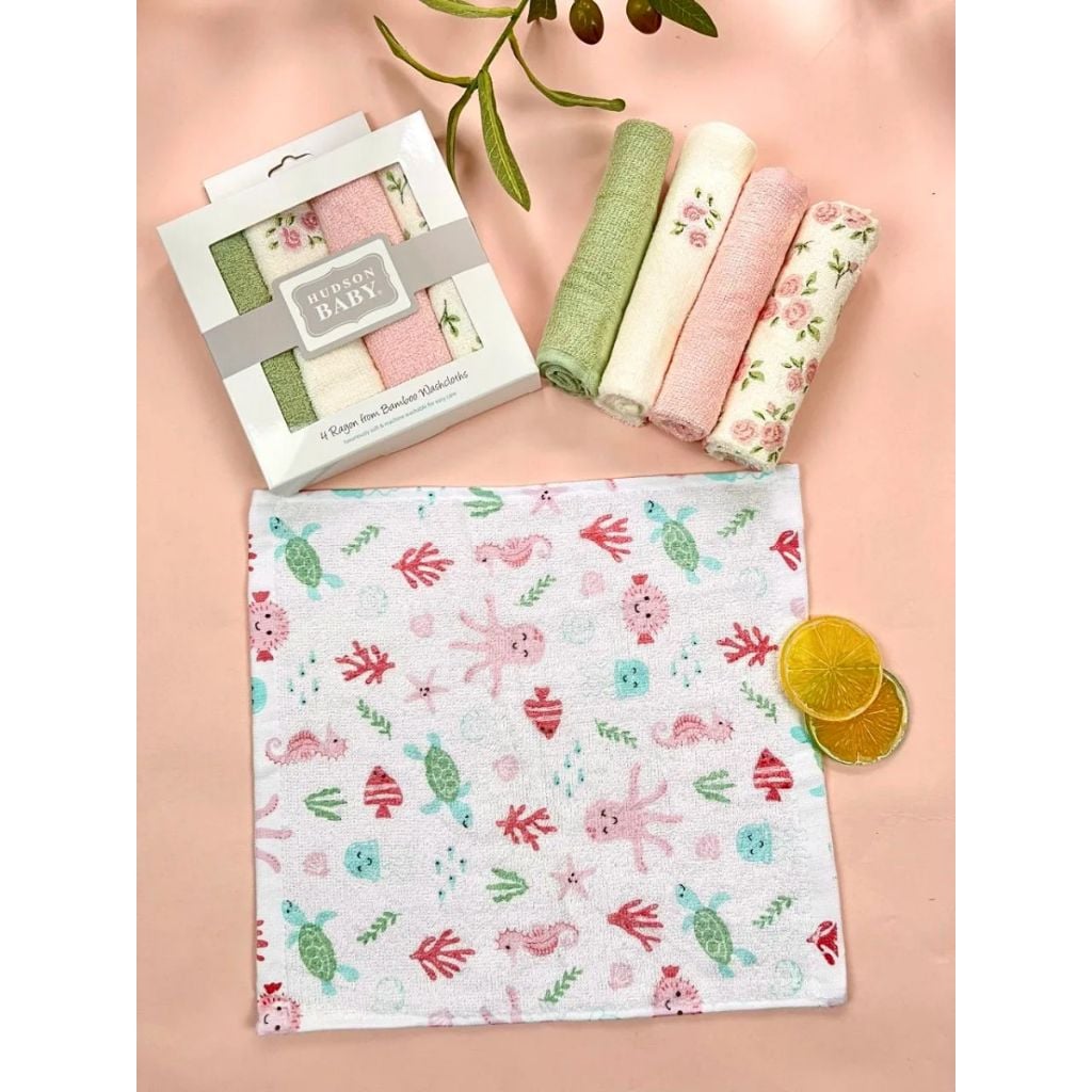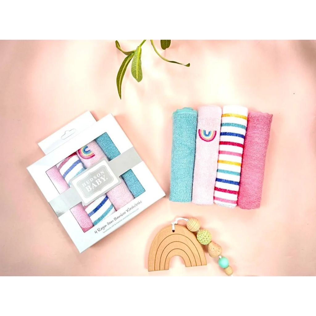 Hộp 4 Khăn Bông Sợi Tre HUDSON, Khăn Sữa Cho Bé