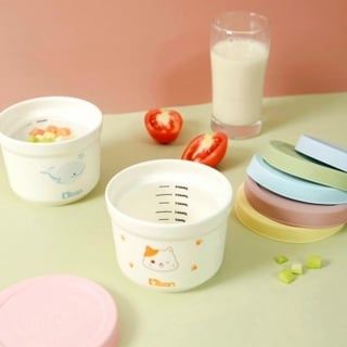 - Bát ăn dặm: Kích thước hũ như bát ăn thông thường, mẹ có thể sử dụng sau khi hấp/chưng.