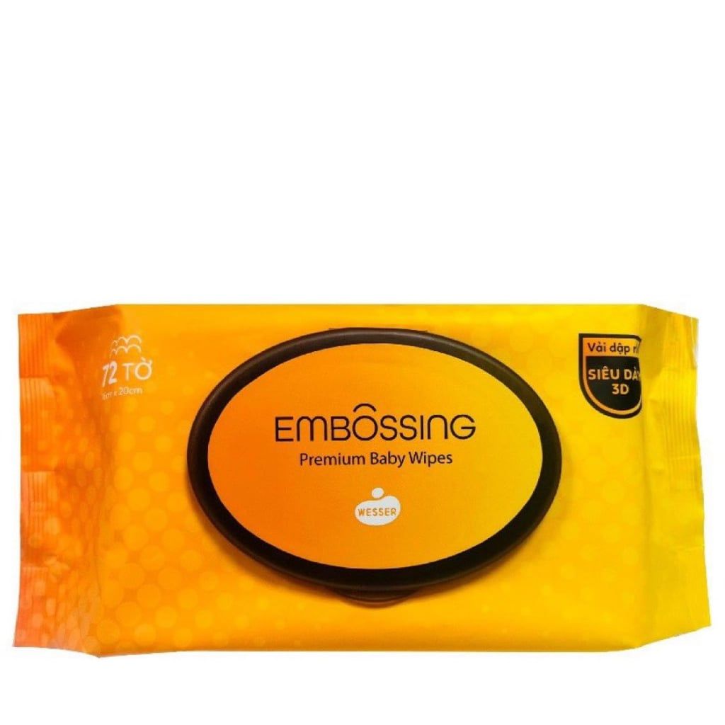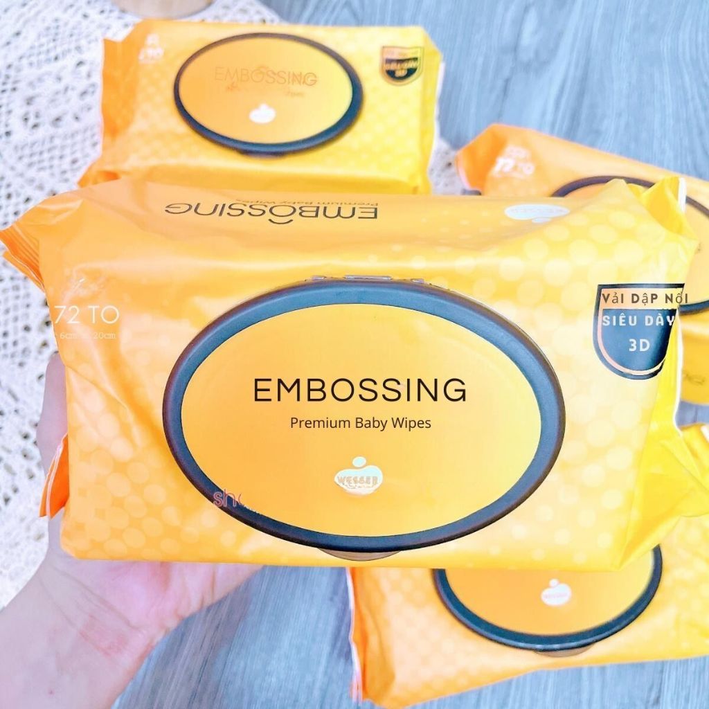 - Khăn ướt cao cấp Wesser với chất liệu vải không dệt được dập nổi nên rất dày dặn và mềm mại, chỉ với một tờ vẫn có thể vệ sinh cho bé thật sạch sẽ.