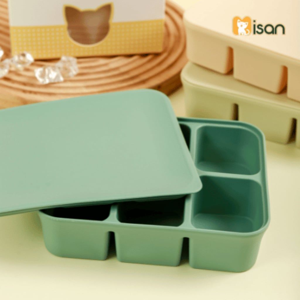 - Mỗi khay chia nhiều ngăn linh hoạt tùy mục đích sử dụng: trữ đông cháo, thịt, rau, nước dùng.. Có nắp đậy đảm bảo không lẫn mùi thức ăn khác và vệ sinh an toàn.