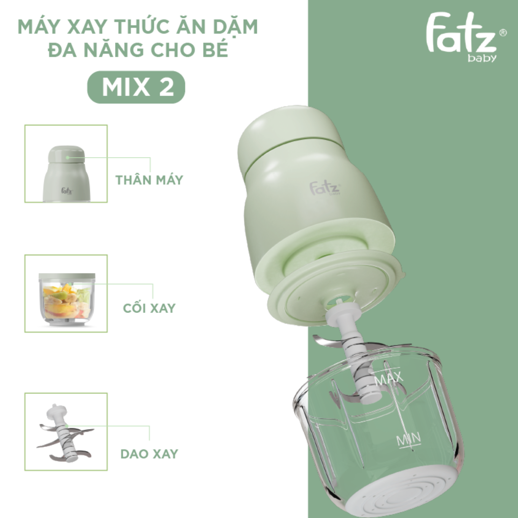 Máy Xay Thức Ăn Dặm Đa Năng Cho Bé Fatzbaby Mix 2 - Trợ Thủ Đắc Lực Cho Mẹ Bỉm Sữa