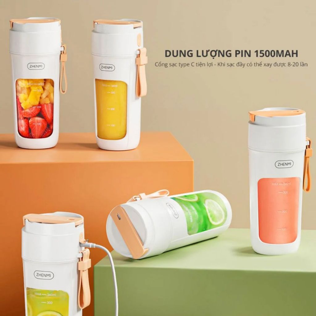 Máy Xay Sinh Tố Cầm Tay ZHENMI ZMGZ-J5 10 Lưỡi Xay đá, Sạc Pin, Dung tích 340ml