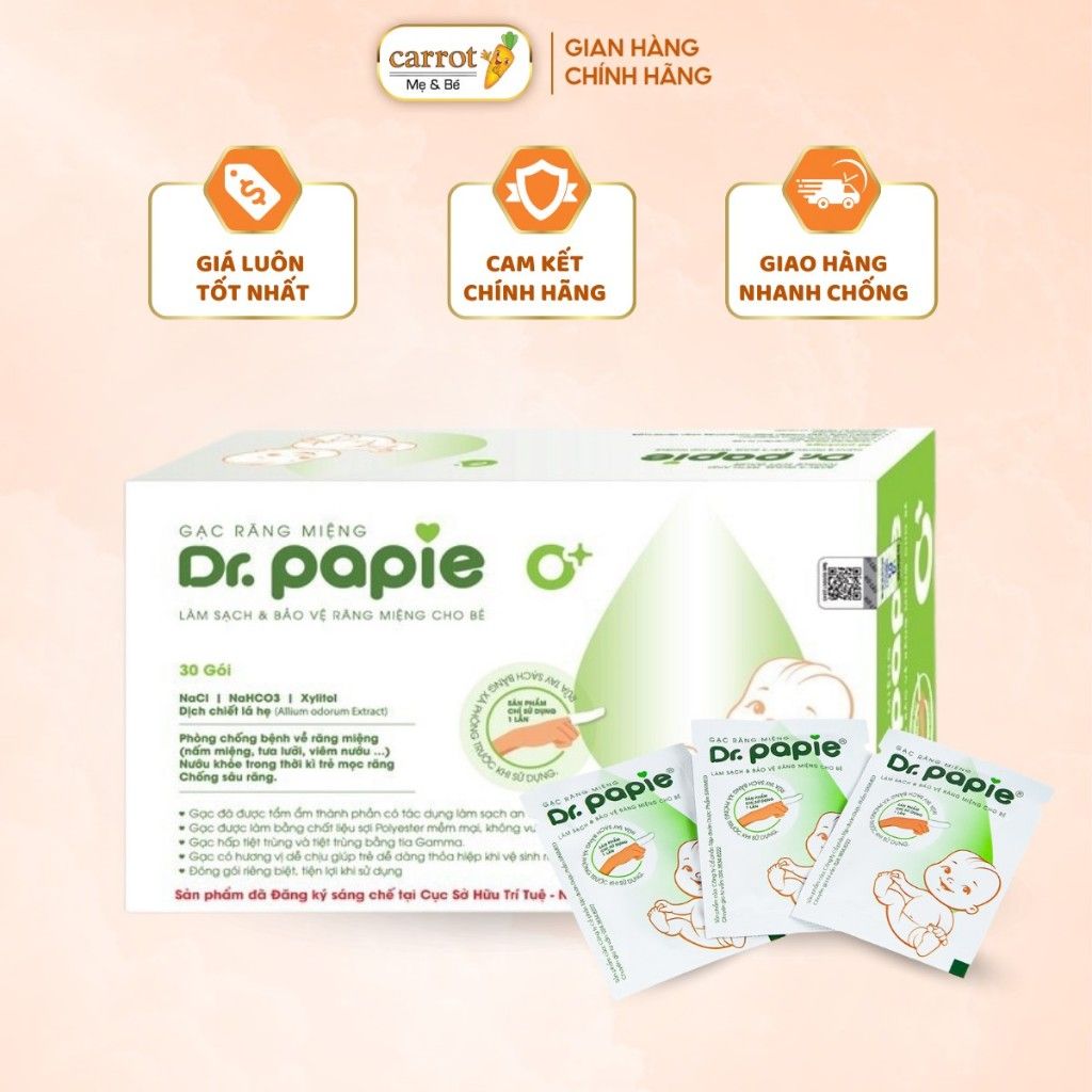 [MUA 2 TẶNG 1] Gạc Rơ Lưỡi Dr. Papie Hộp 30 Cái Cho Bé Sơ Sinh Hàng Chính Hãng - Giải Pháp Vệ Sinh Miệng An Toàn Cho Bé