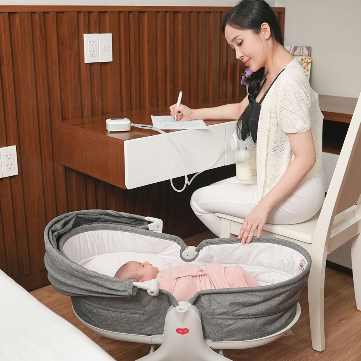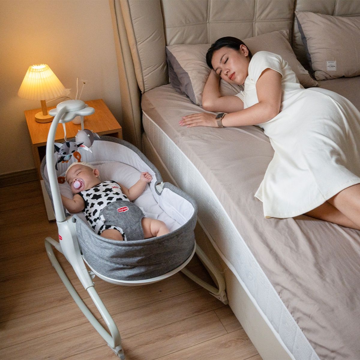 - Sản phẩm đặc sắc ở chỗ có nhiều chức năng trên một nôi rung. Không chỉ tạo cho trẻ sơ sinh một không gian ngủ an toàn tuyệt đối mà còn đưa bé vào giấc ngủ êm ái như trong vòng tay mẹ.