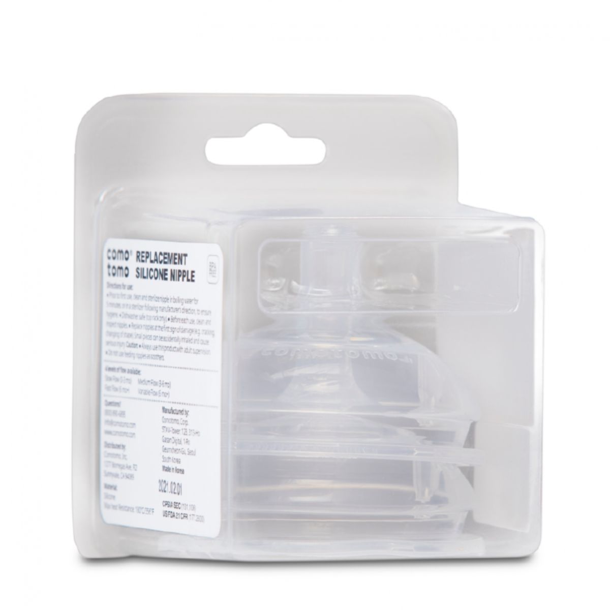 Thiết kế ren xoáy thông minh tương thích mọi bình silicone Comotomo. Việc lắp đặt và thay thế núm ti trở nên dịu nhẹ, tiện lợi. Sản phẩm được đóng gói 2 chiếc trong hộp, tiết kiệm chi phí thay thế.