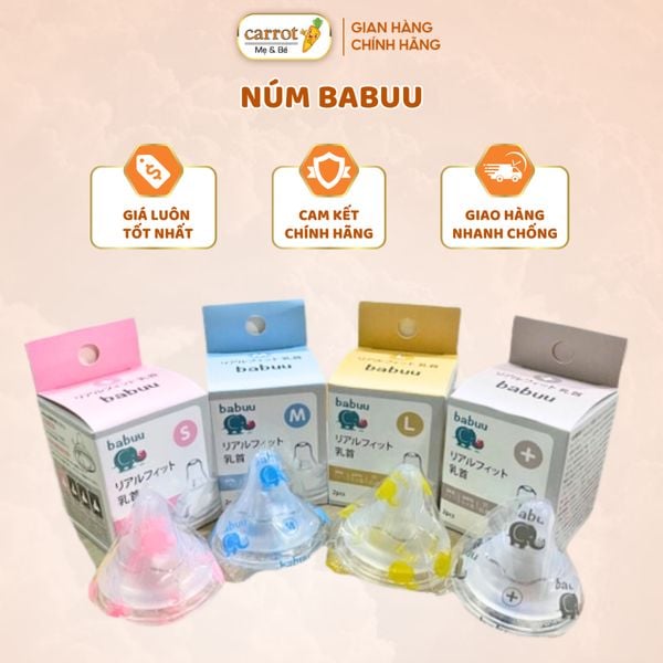 Núm ti silicone cổ rộng Babuu thế hệ thứ 3. Đây là một loại núm ti được thiết kế đặc biệt cho bé có cổ bình rộng, và có thể điều chỉnh để phù hợp với khớp ngậm của bé. Ngoài ra, nó cũng có khả năng thay thế cho núm bình Babuu Pigeon Kichi cổ rộng. Núm ti này là vật liệu silicone siêu mềm và thiết kế hình cánh hoa, có thể làm cho việc sử dụng của bé dễ dàng và thoải mái hơn.
