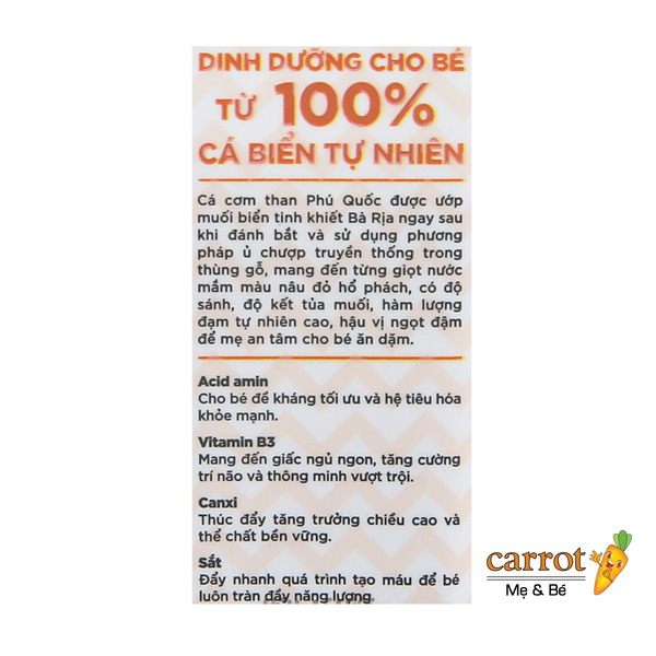- 100% tự nhiên: Chỉ từ cá cơm than Phú Quốc và muối biển Bà Rịa.