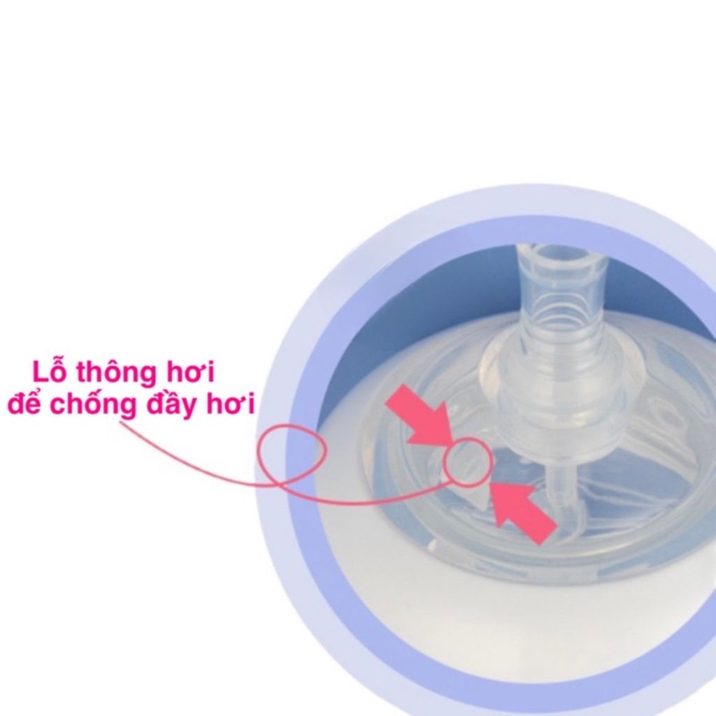 - Ống tập hút có van chống sặc bên cạnh ống hút ngăn ngừa đầy hơi, chống sặc cho bé.
