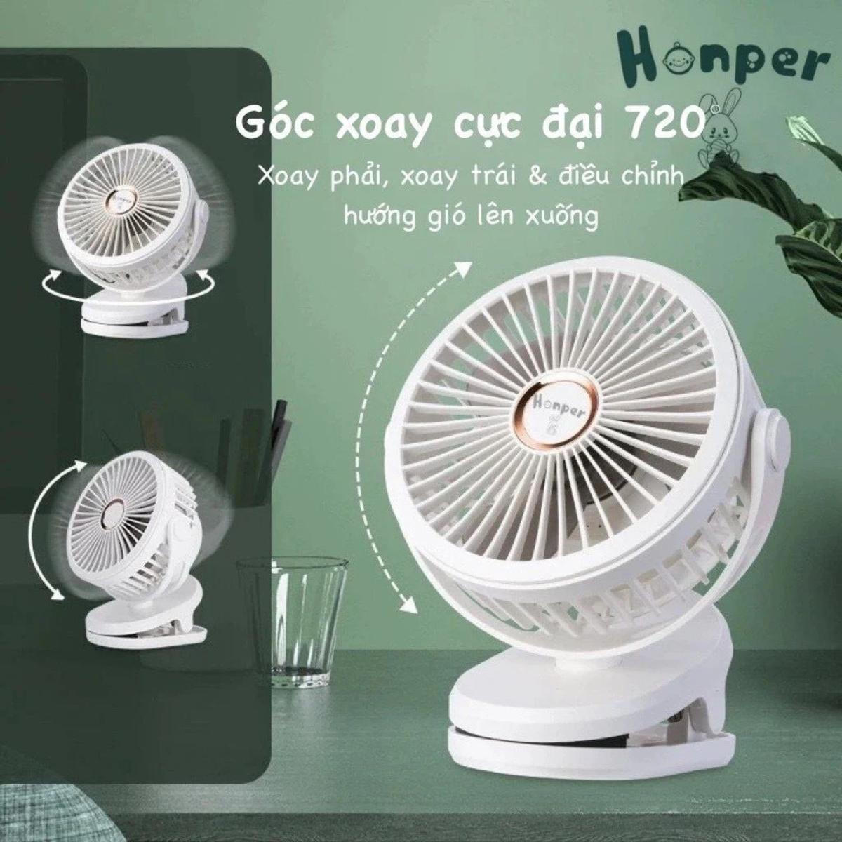 - Quạt Honper hoạt động êm ái, không gây tiếng ồn, giúp bé ngủ ngon giấc và không làm ảnh hưởng đến công việc của mẹ.