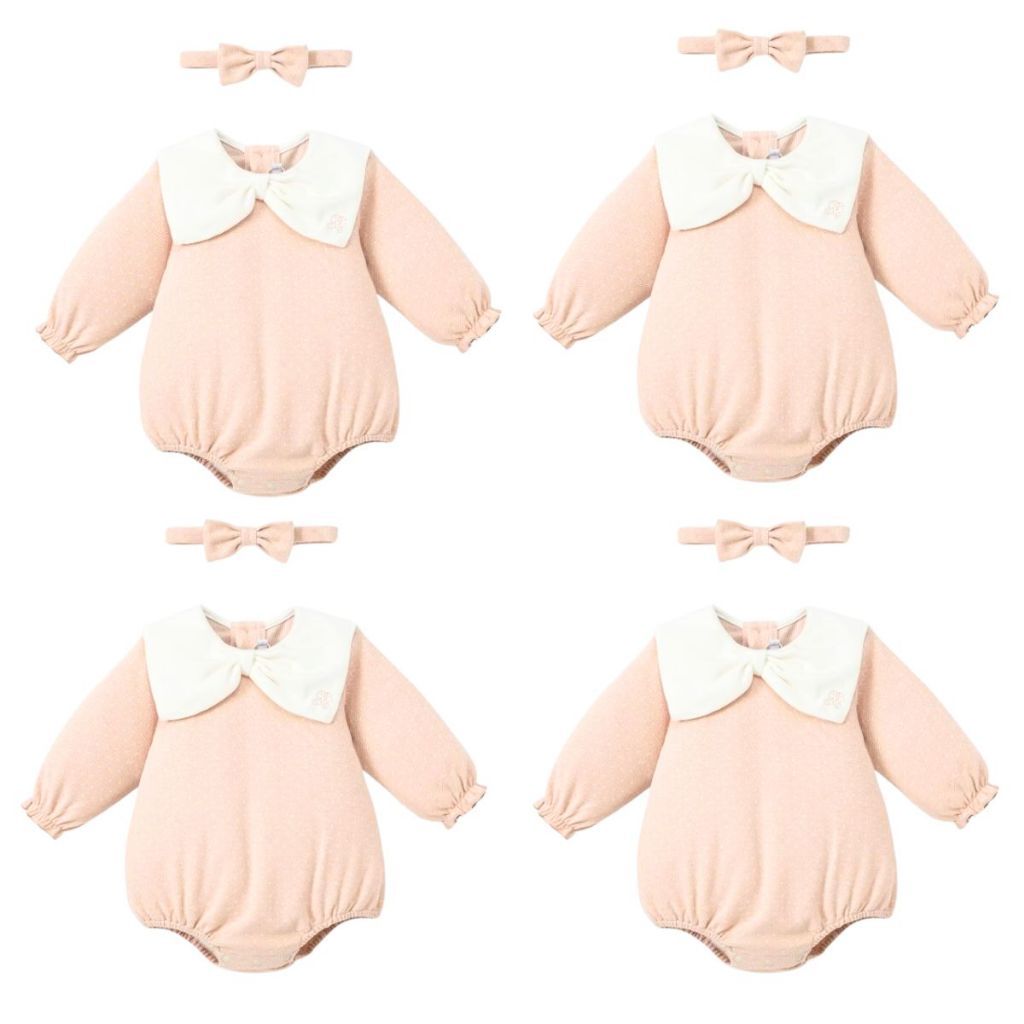 Set Body Dài Kèm Băng Đô Nơ Hồng Chấm Bi Nous 0-12M