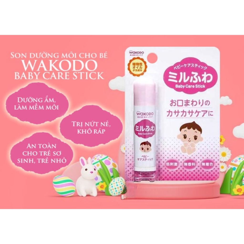 Son dưỡng nẻ Wakodo là sản phẩm nổi tiếng của Nhật Bản, được thiết kế đặc biệt cho làn da nhạy cảm của trẻ nhỏ. Son dưỡng nẻ Wakodo thường chứa các thành phần tự nhiên, an toàn cho da nhạy cảm của bé, giúp dưỡng ẩm mà không gây kích ứng.