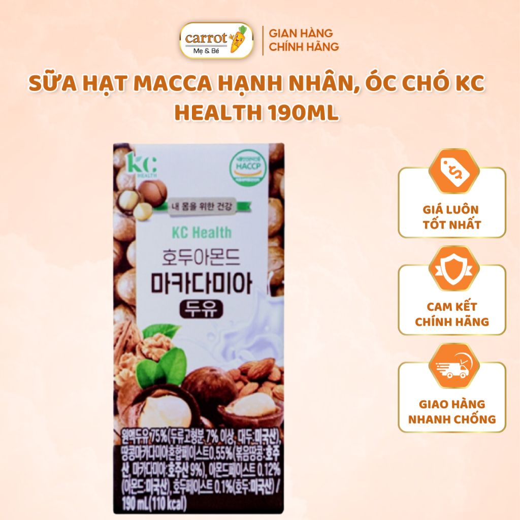 Sữa Hạt Macca Hạnh Chân, Óc Chó KC Health Hàn Quốc 190ML