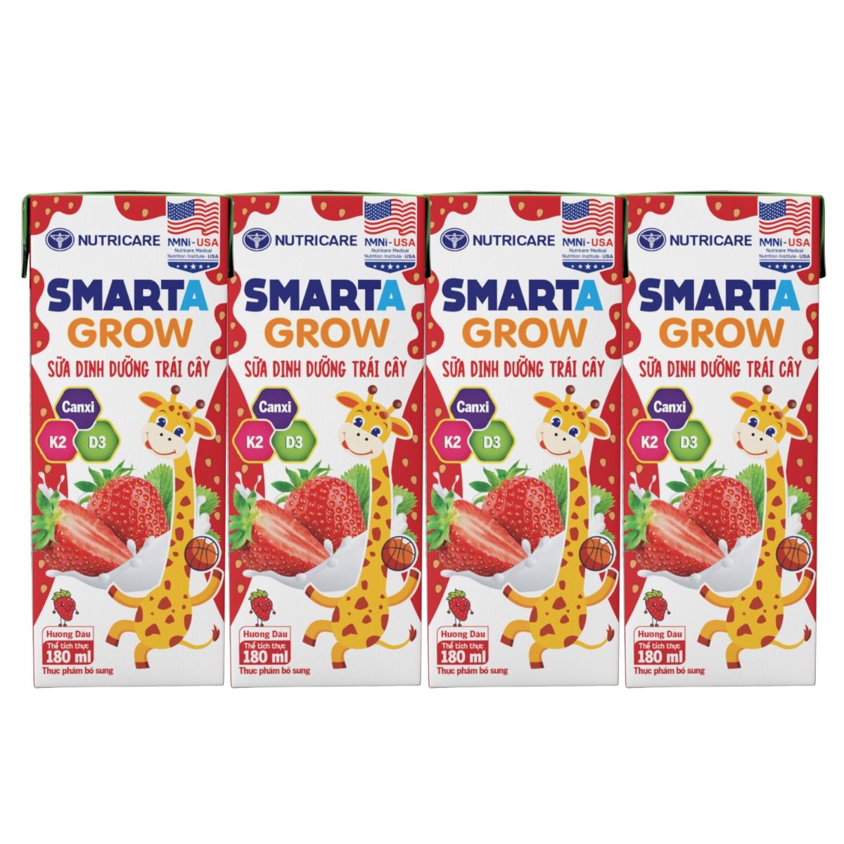 Sữa Dinh Dưỡng Trái Cây Smarta Grow Hương Dâu 180ml Lốc 4 Hộp