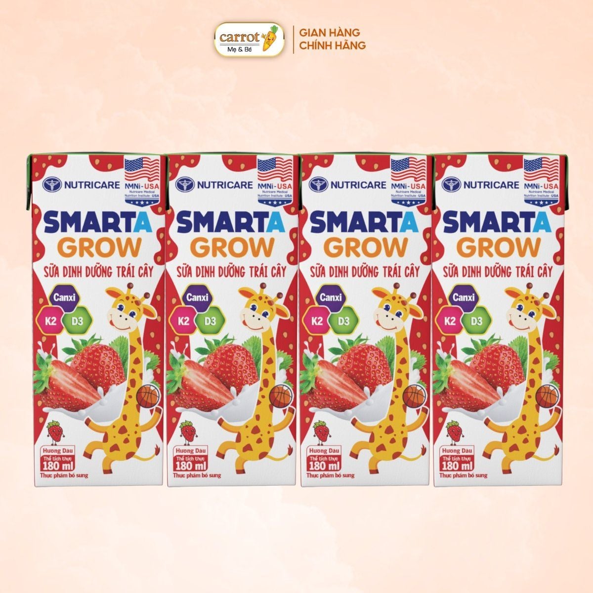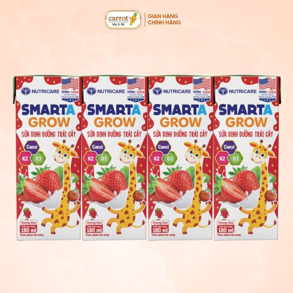 Sữa Trái Cây Dinh Dưỡng SMARTA GROW Lốc 4 Hộp Vị Dâu, Sữa Nước Hỗ Trợ Tăng Chiều Cao Cho Bé