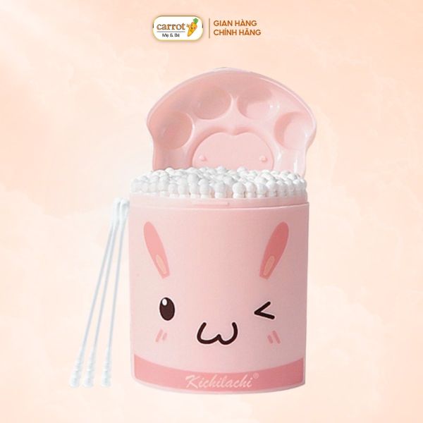 Tăm bông sơ sinh Kichilachi thân giấy, bông ngoáy tai trẻ em hộp 200 que