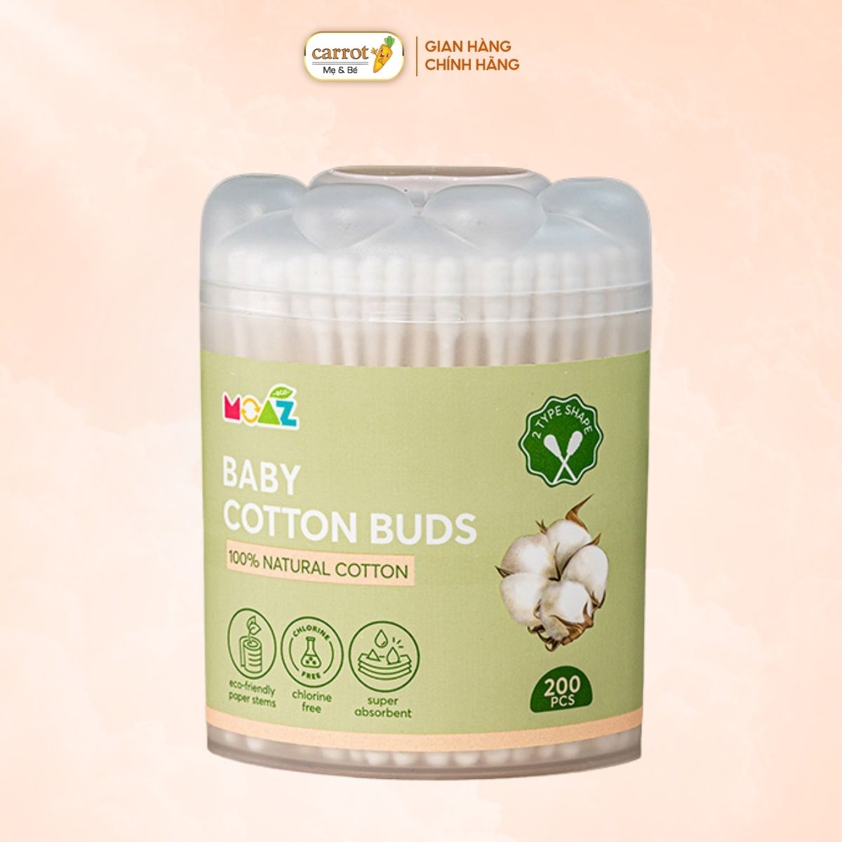 Tăm Bông Trẻ Em Thân Giấy Moaz Eco Hộp 200 Que