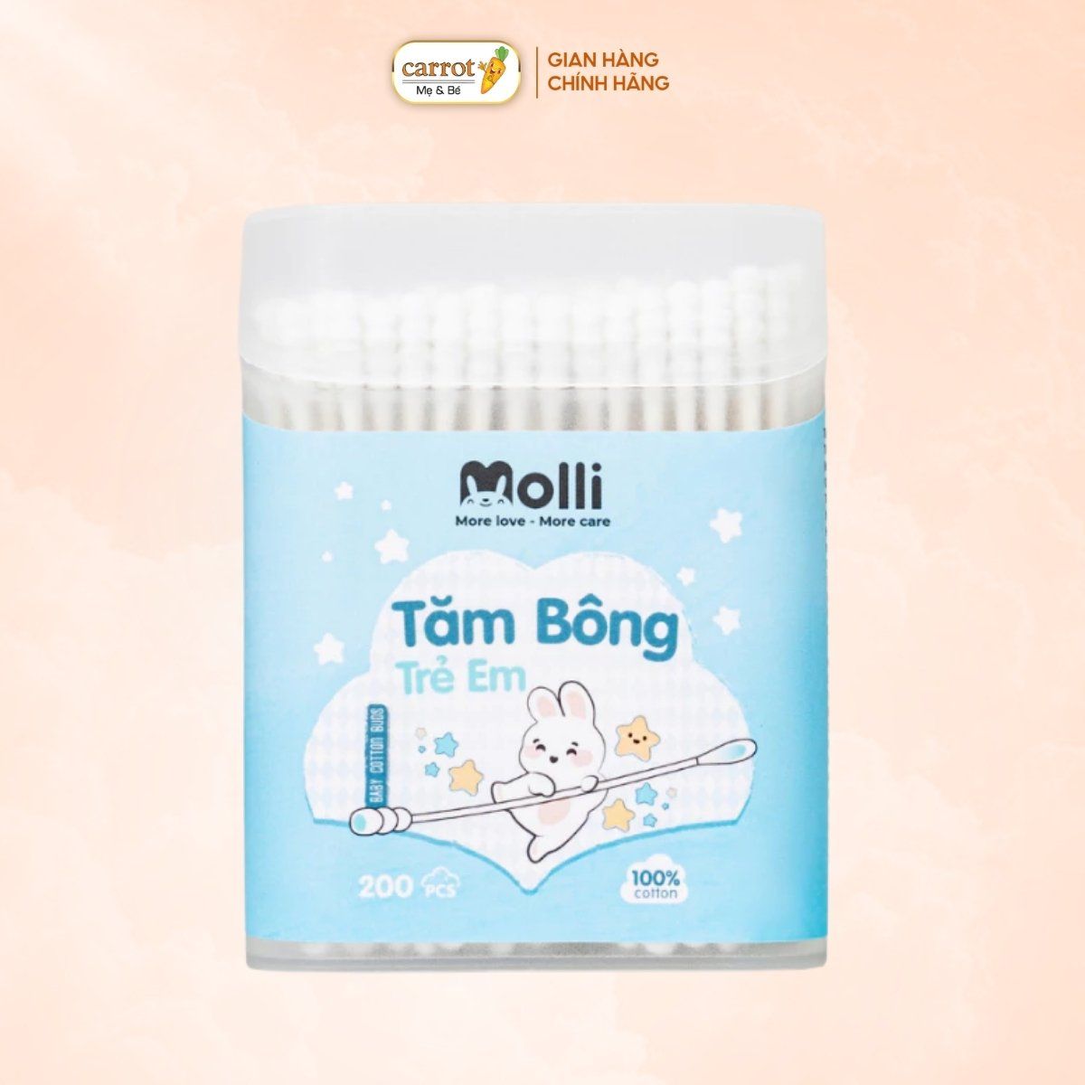 Tăm Bông Trẻ Em Thân Giấy Molli Hộp 200 Que