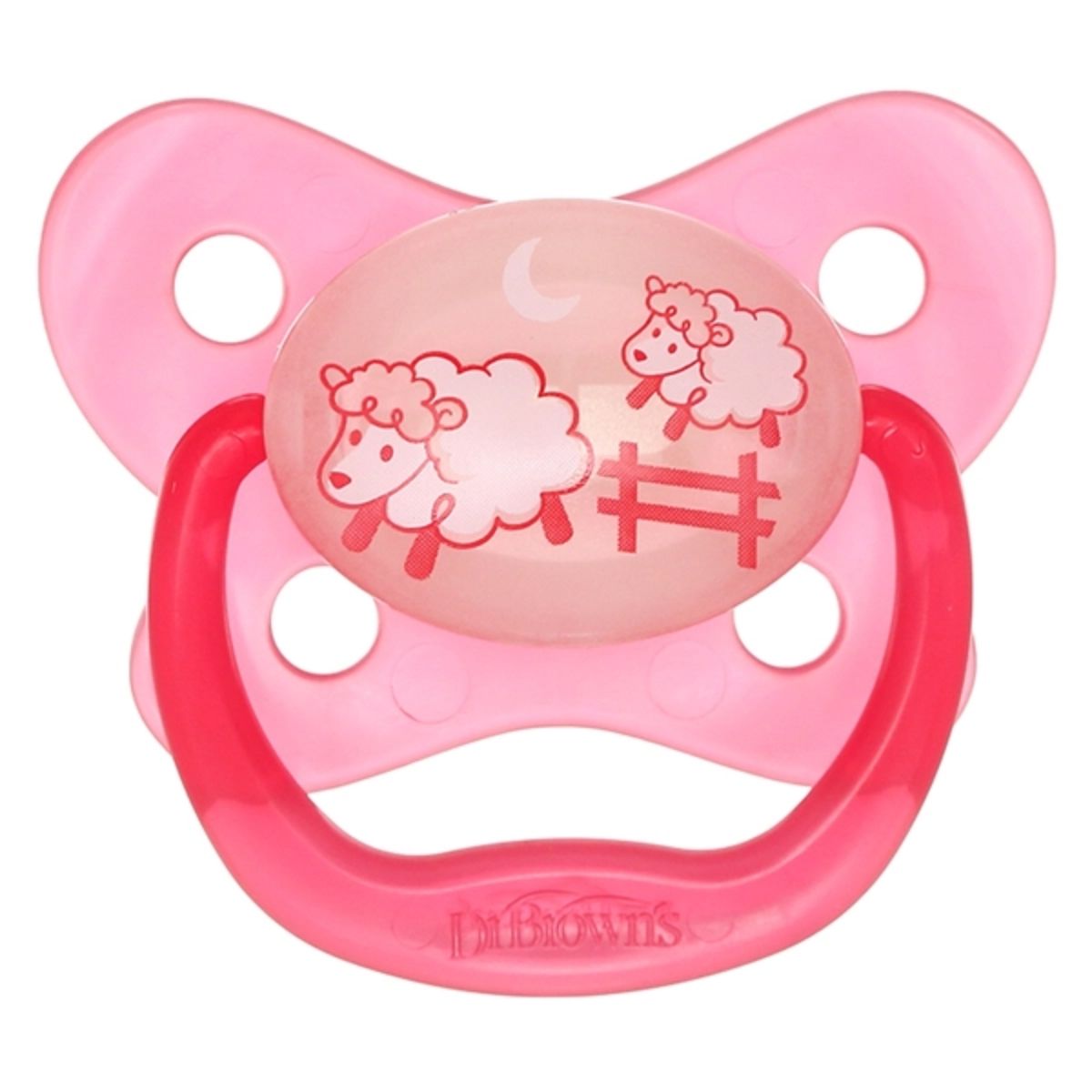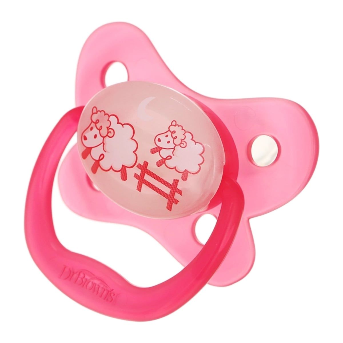 Ti Ngậm Dr.Brown's Dạ Quang Silicon Siêu Mềm Cho Bé 6-18M Hồng